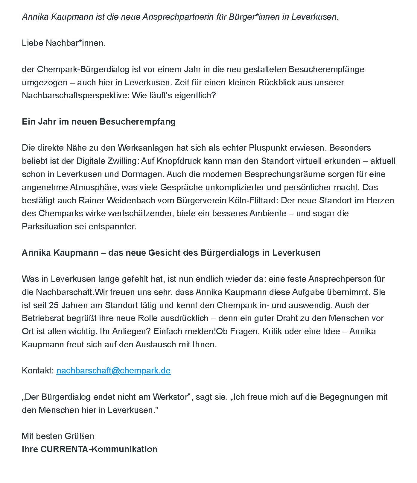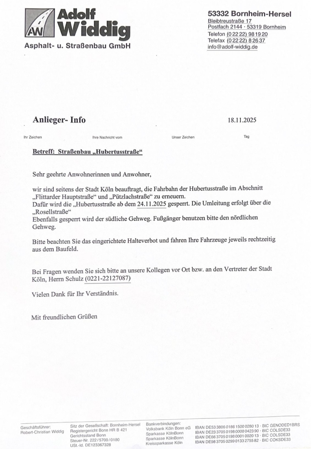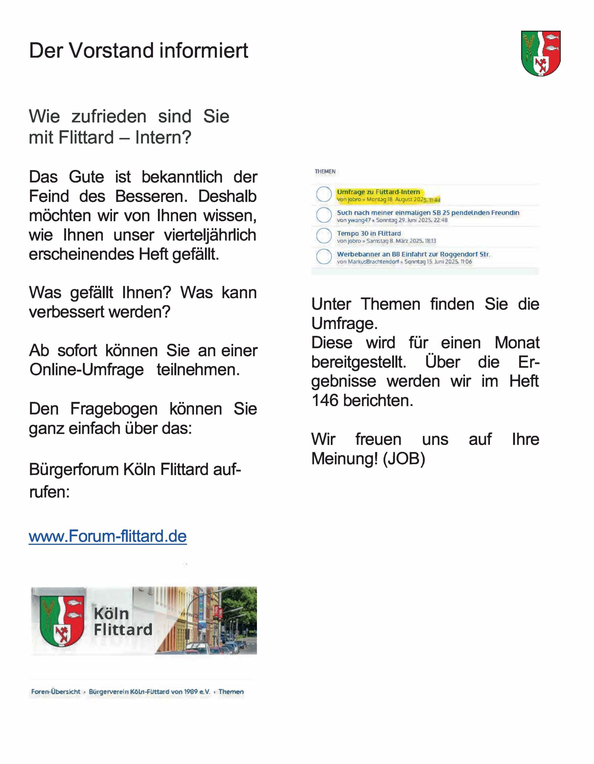 Der Vorstand des Bürgervereins Köln-Flittard hat dieses Unterfangen geprüft, für unterstützenswert befunden und steht mit den Initiatoren in Kontakt. Die Bürgerinitiative kann auch über Email gegenwind@e-mail.de erreicht werden. Daneben kann per Telefon (66 66 64) über den Bürgerverein Köln-Flittard ein Wunsch nach Kontaktaufnahme vermittelt werden, z. B. wenn es keine Möglichkeit gibt, sich über das Internet daran zu beteiligen und eine Unterstützungsunterschrift auf Papier geleistet werden soll. Diese Möglichkeit besteht auch in diversen Geschäften in Stammheim und Flittard.