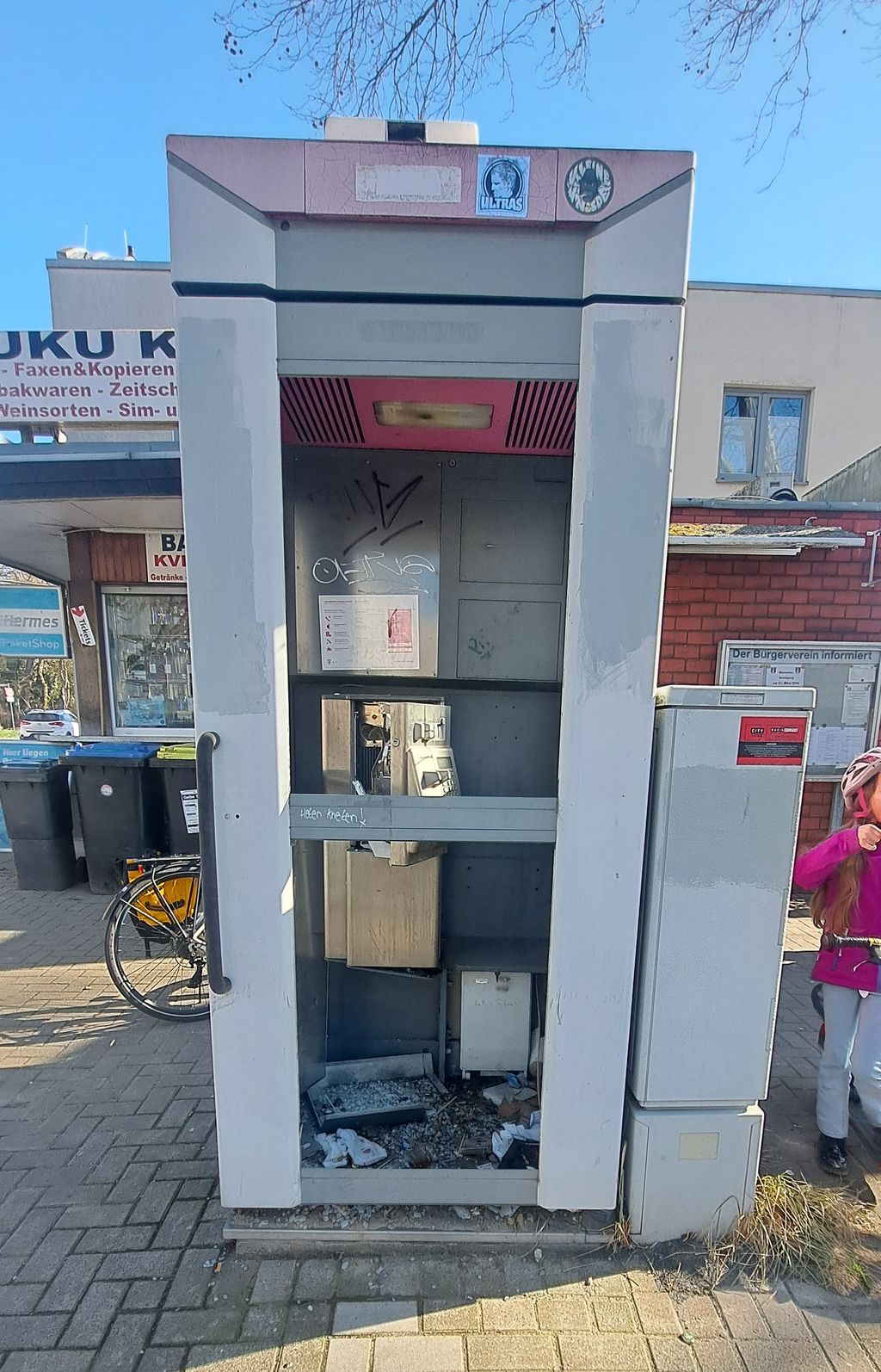 Desolate Telefonzelle Ecke Evergerstr./Edelhofstr.: