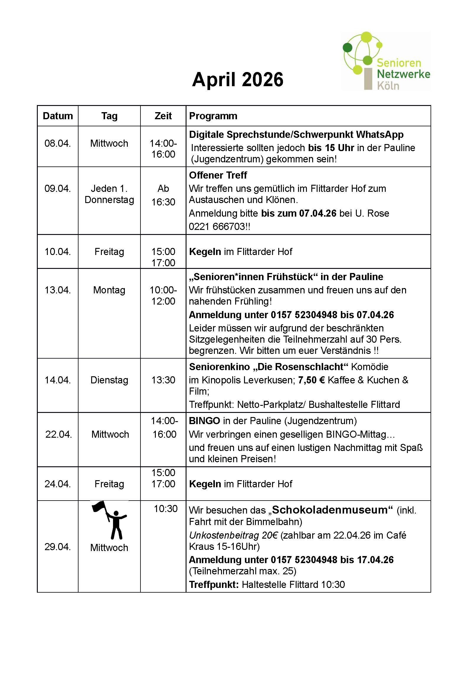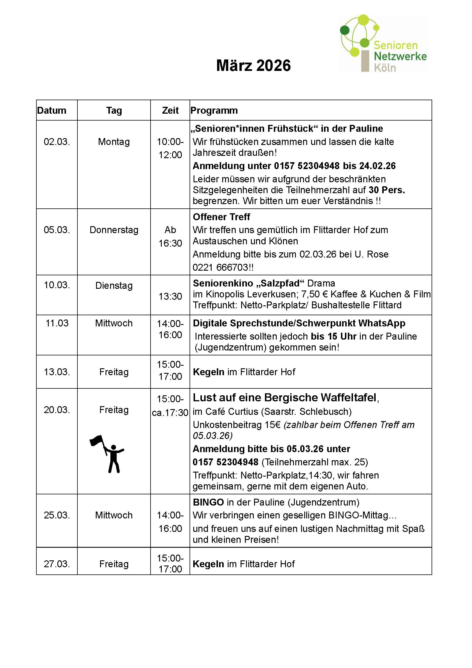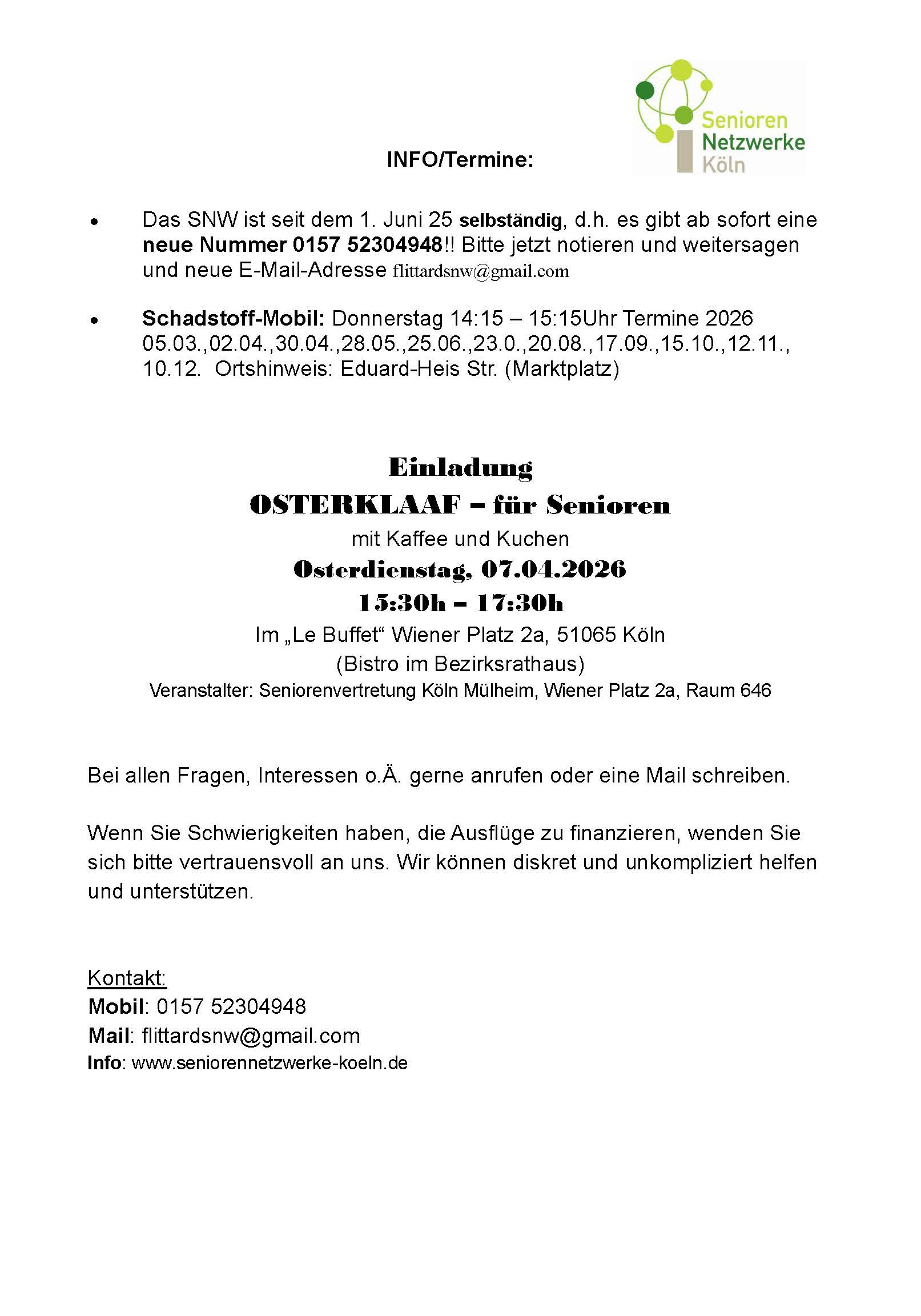 Das SeniorenNetzwerk Flittard informiert!