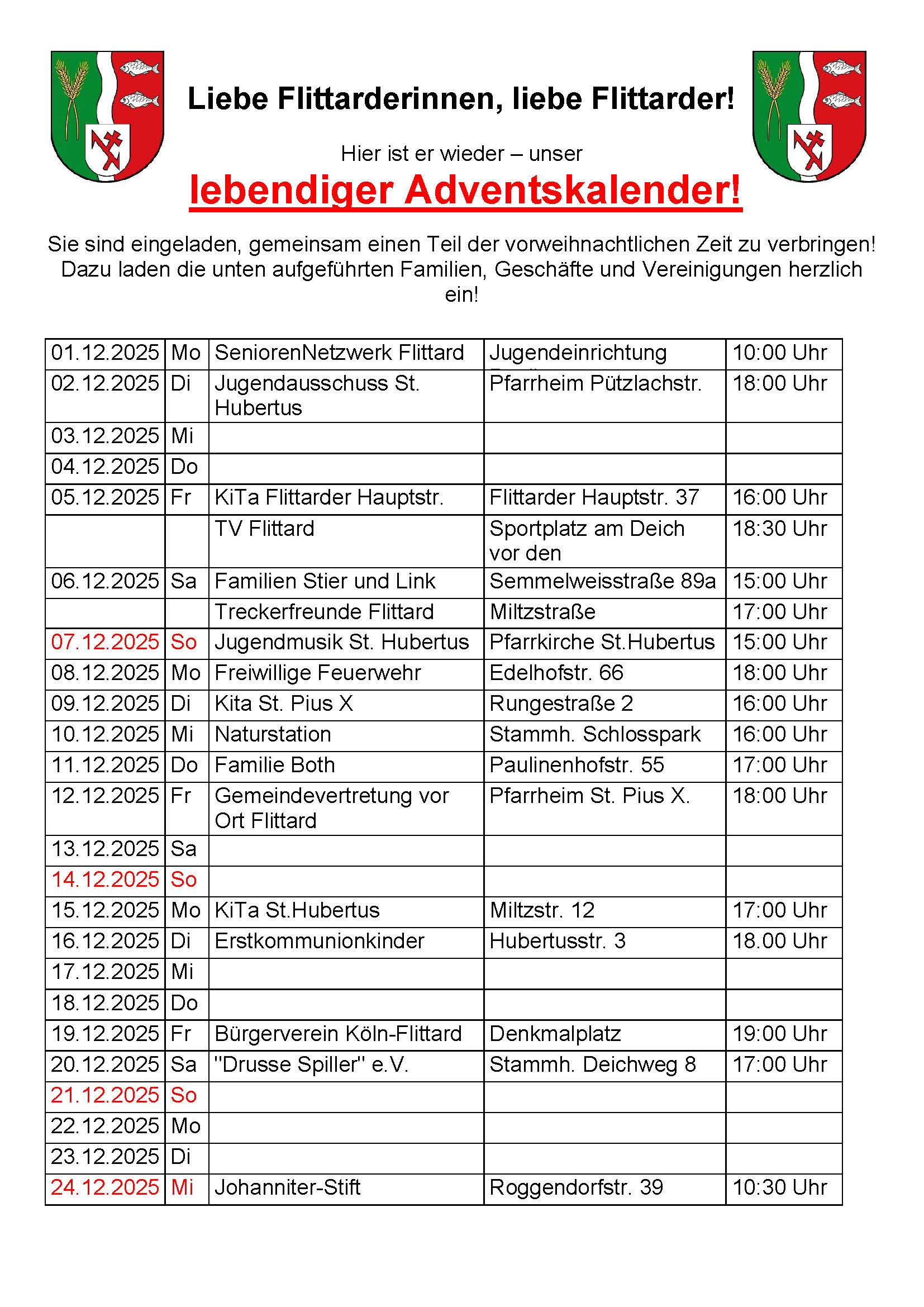 Der Bürgerverein präsentiert den Lebendigen Adventskalender 2025! B. Odenthal / vor 15 Stunden 25. November 2025